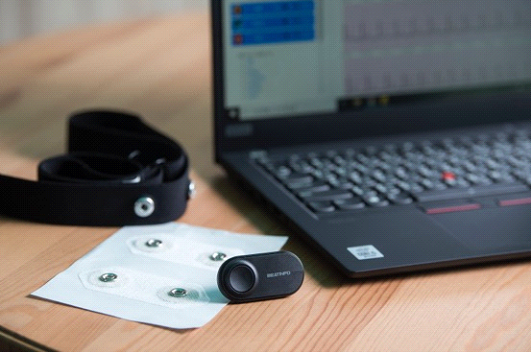 圖1 奇翼醫電推出的胸品貼片可搜集心跳、心率、心電圖、體溫、環境氣壓等各種資訊。