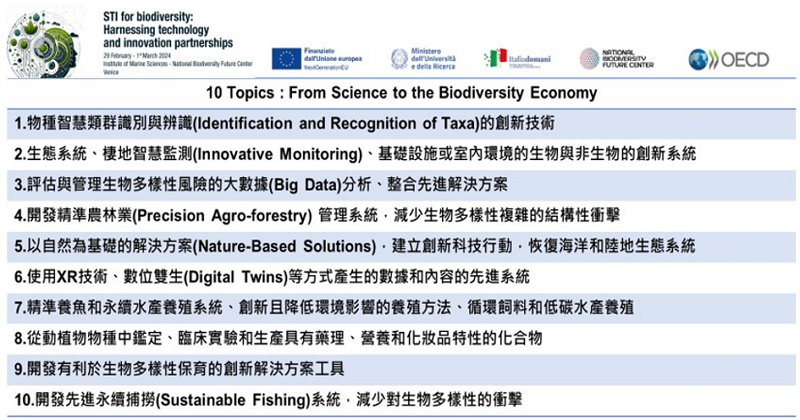 表1 OECD (國際經合組織) 10項科技致能生物多樣性主題