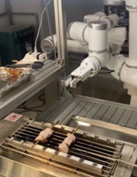 在下游消費端,大宇資訊規劃的整店輸出模式展現智慧產業鏈的完整應用。從POS系統、AI拉麵機器人、智慧燒烤機(如圖2所示)到數據分析平台,提供一整套標準化、自動化、智能化的解決方案。這套技術架構借鑑日本CSD集團百家連鎖店的營運經驗,針對台灣市場進行在地化設計,目標是讓每道餐點達到高水準一致性,並大幅縮短新店培訓期。
