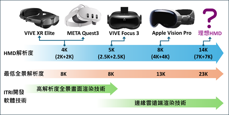 全景畫面渲染技術與邊緣雲遠端渲染技術可提升頭戴式裝置畫質解析度,搭配多自由度移動全景畫面渲染技術強化沉浸體驗感,適合3D視訊會議、觀光推廣、專業訓練等應用領域。